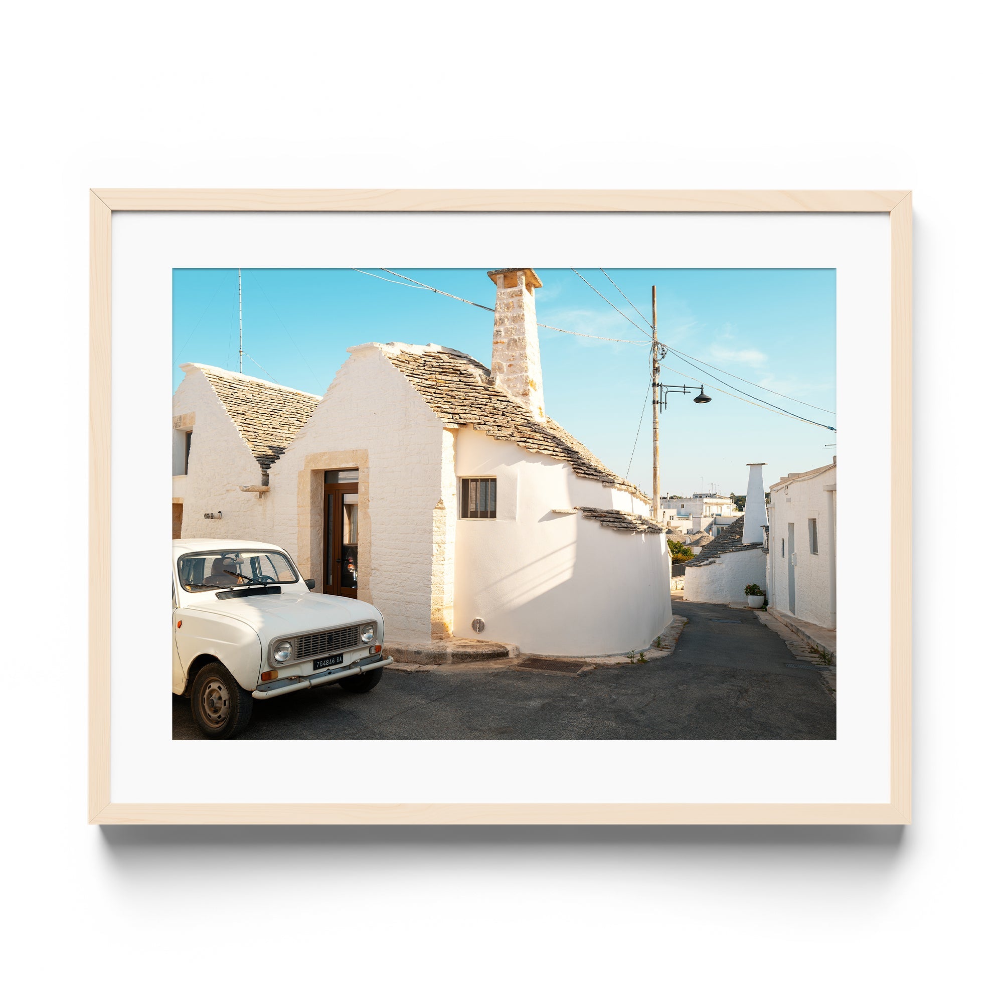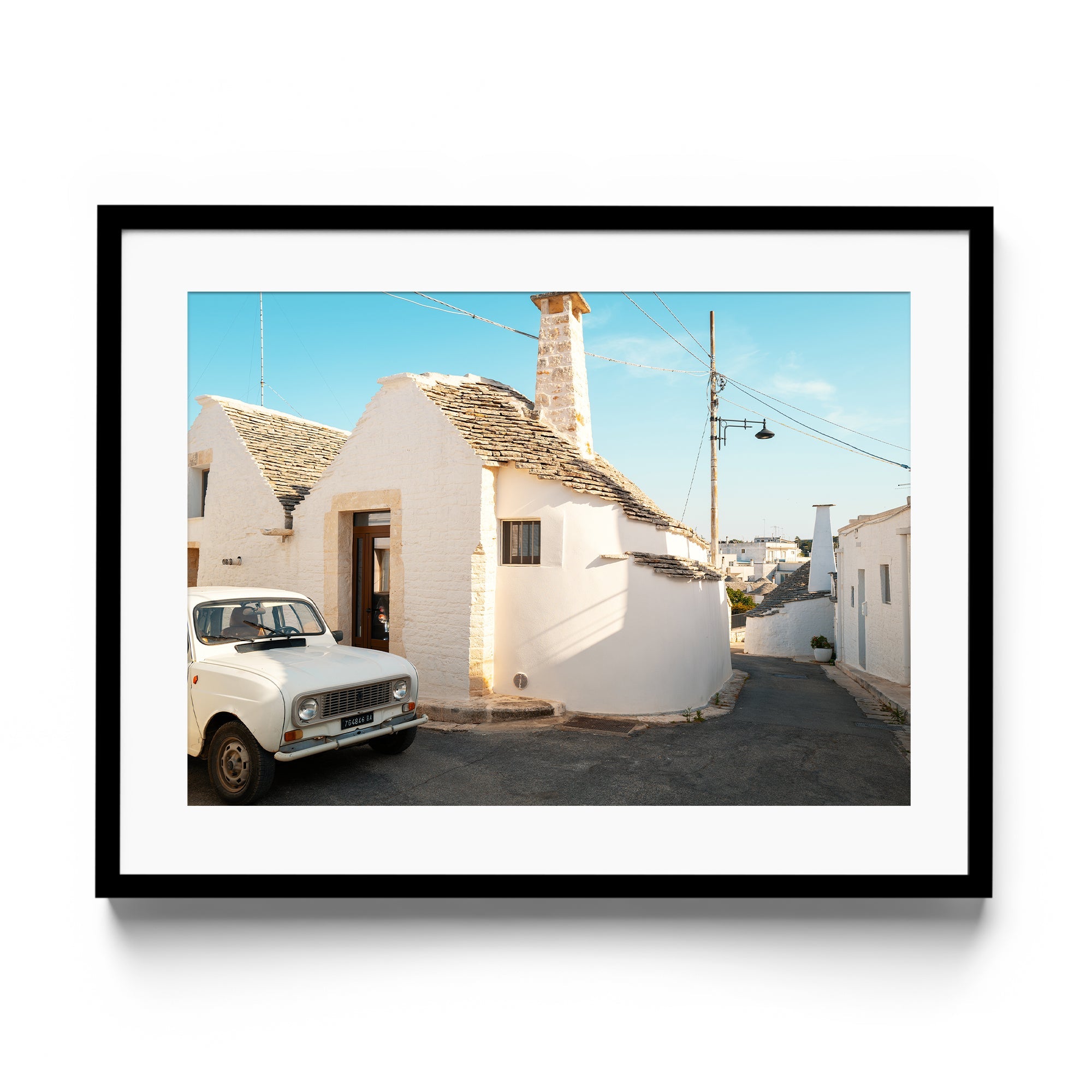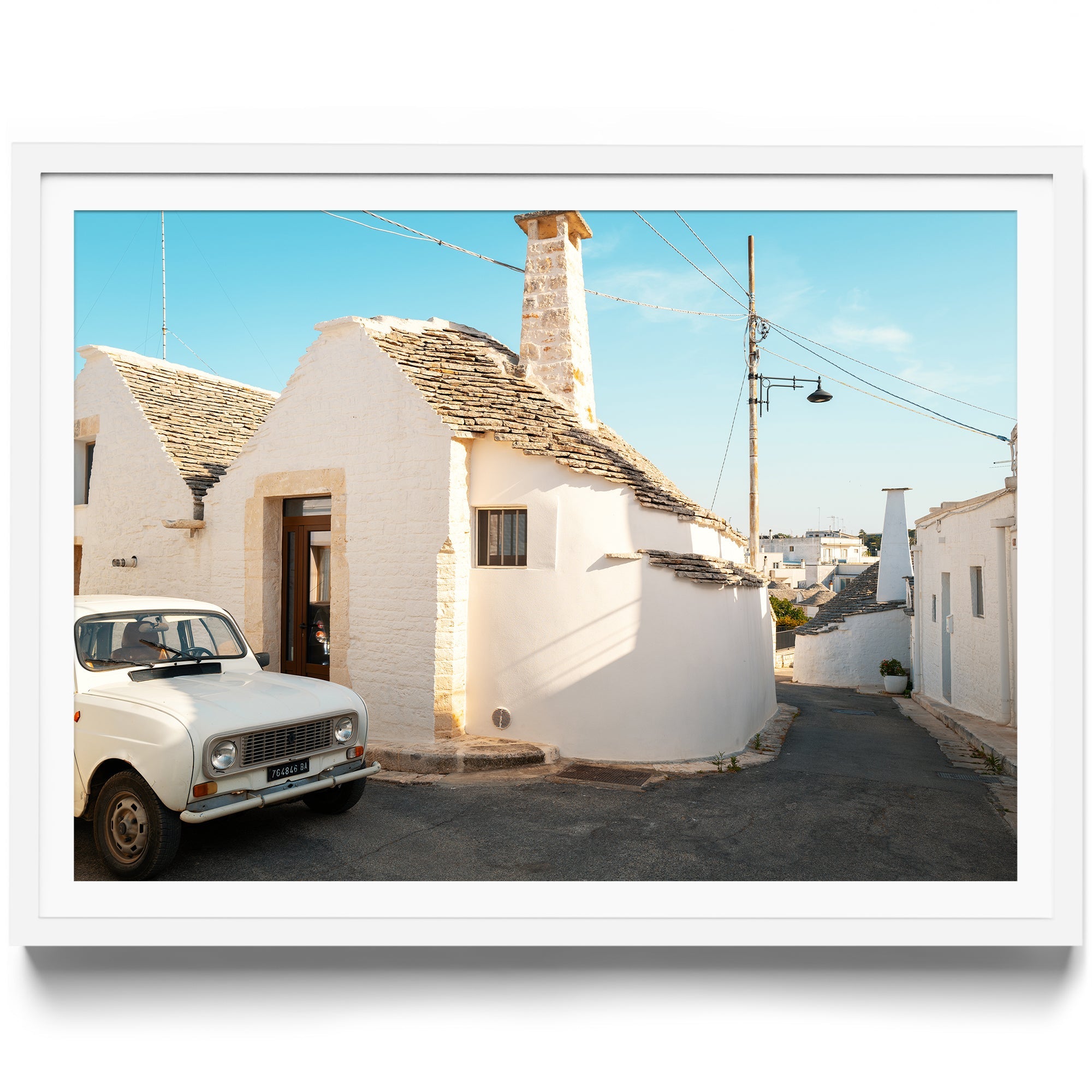 This piece tells a story of La Dolce Vita, where a humble Renault 4 becomes the protagonist in a tale of Italian charm. The iconic trulli houses of Alberobello create a UNESCO World Heritage backdrop for this beloved automobile, resulting in a composition that speaks of travel, tradition, and timeless European style.