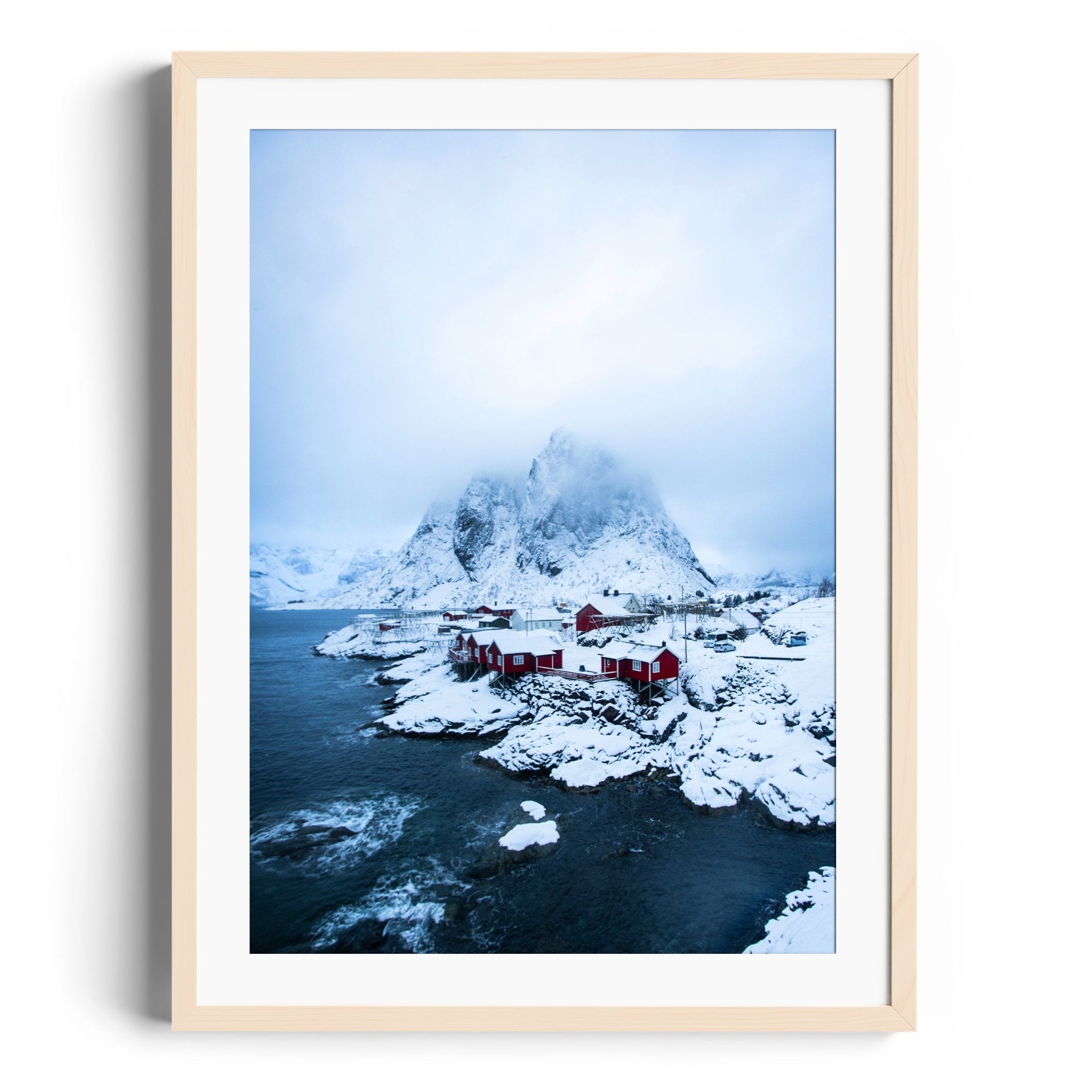 This piece captures the essence of Norway's soul, where traditional life meets majestic nature, transforming Lofoten's iconic fishing cabins into a meditation on harmony between culture and wilderness.