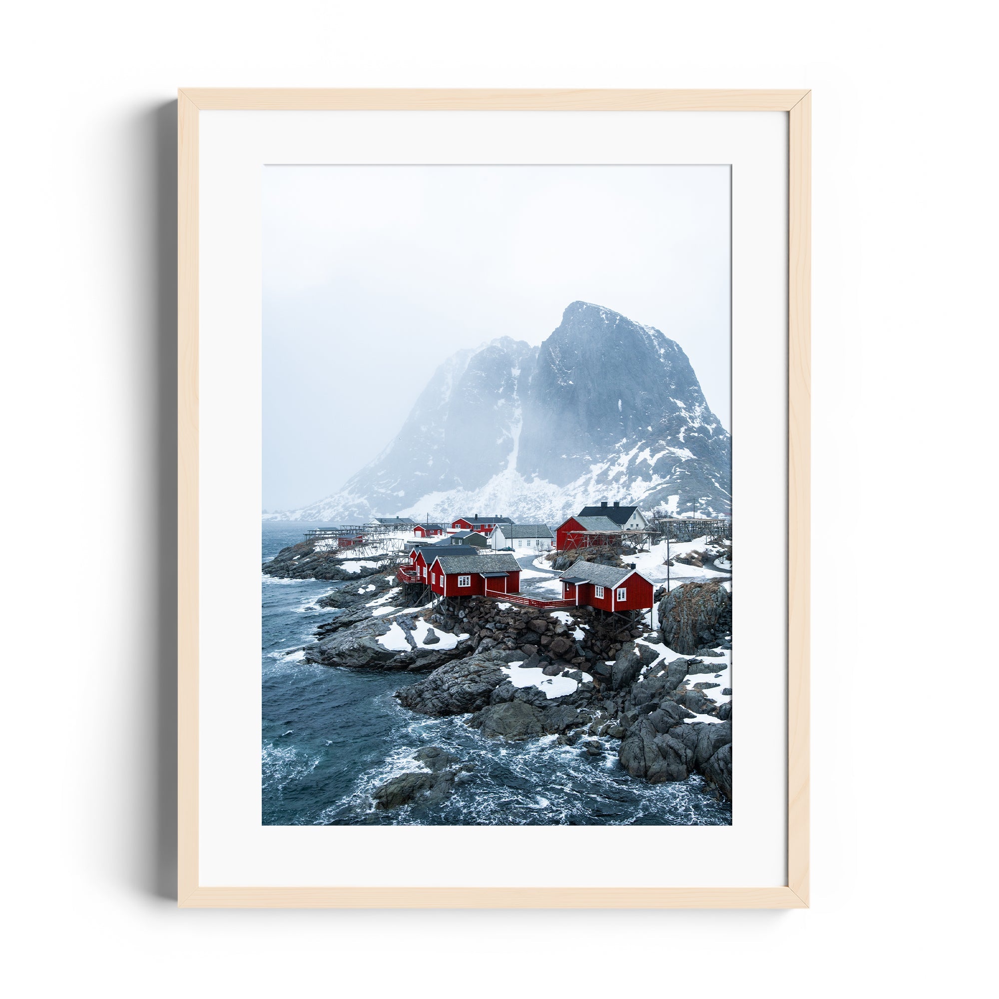 Through Lozada's lens, Lofoten's dramatic landscapes become studies in contrast and composition. Morning light kisses mountain peaks, turning stone to gold. Traditional architecture adds bold strokes of red against winter's white canvas. Each piece speaks to both the raw power of nature and the refined elegance of Nordic design, creating works that transcend simple landscape photography to become statements of artistic excellence.