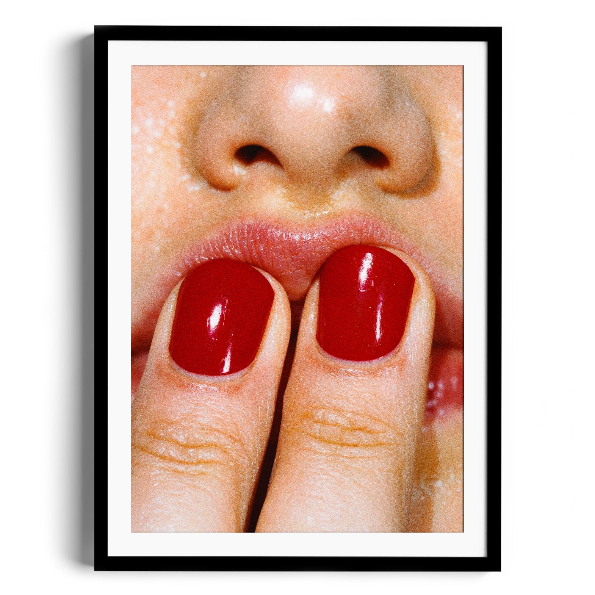 A daring exploration of desire and form, where each detail becomes a story of its own. This mesmerizing close-up transforms lips into a landscape of sensuality, creating an intimate dialogue between art and observer that commands attention at any scale.