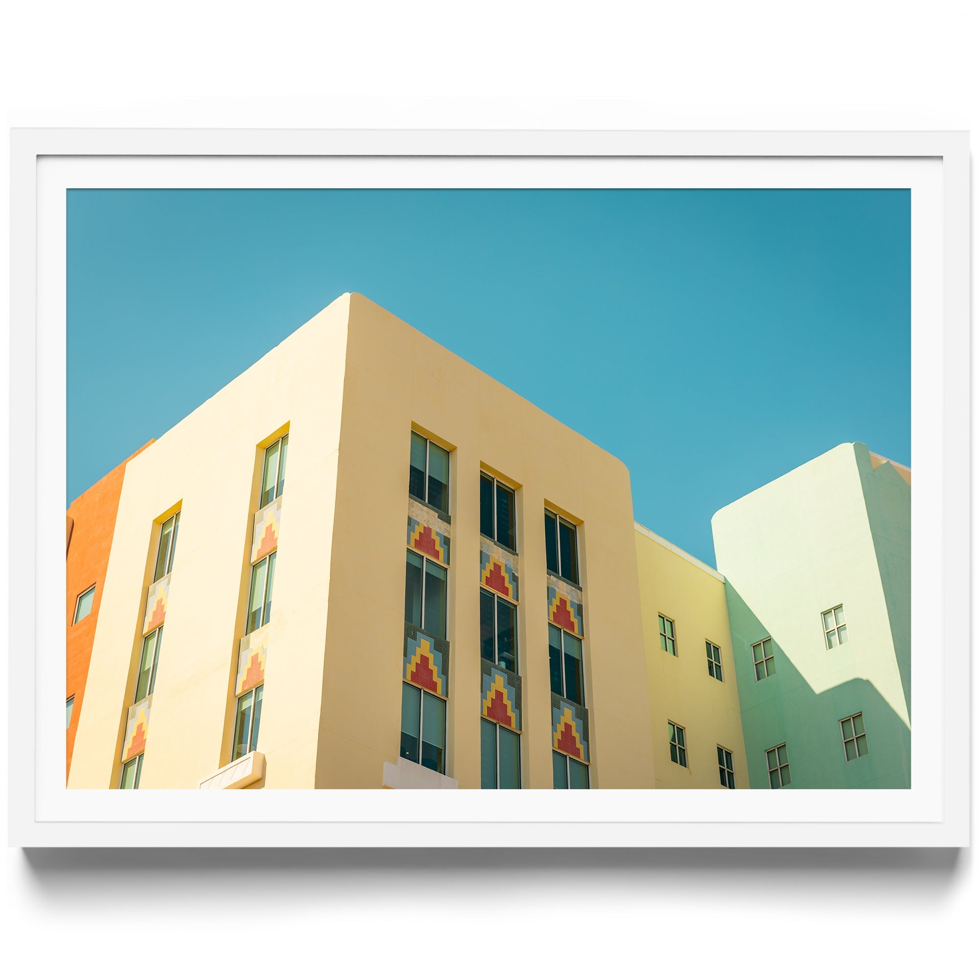 In this masterful collection, Miami reveals itself through a sophisticated lens, where Art Deco treasures and tropical elements merge into a study of timeless elegance. Lozada captures the city's perpetual golden hour, when pastel-hued architecture bathes in warm light and palm trees cast sculptural shadows across geometric facades.