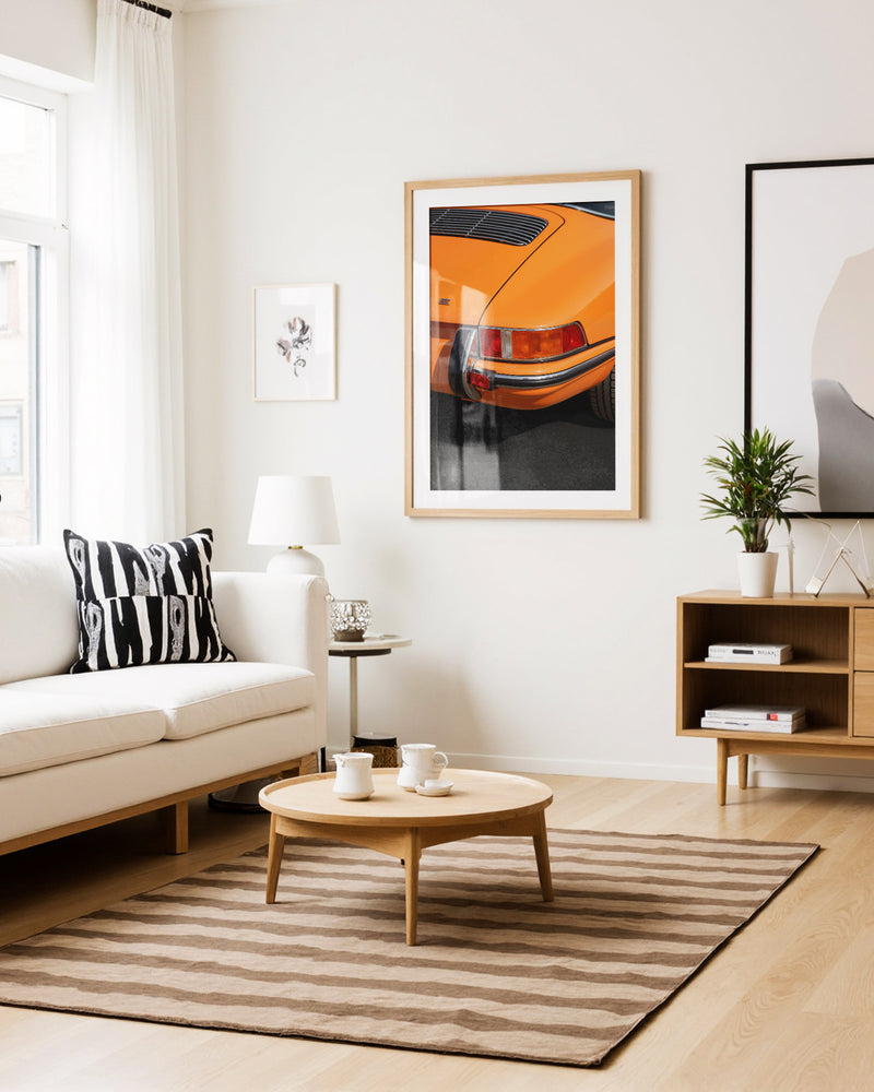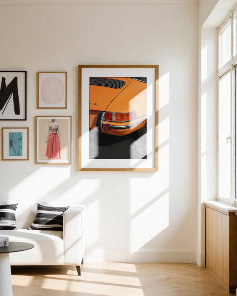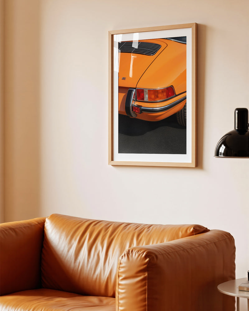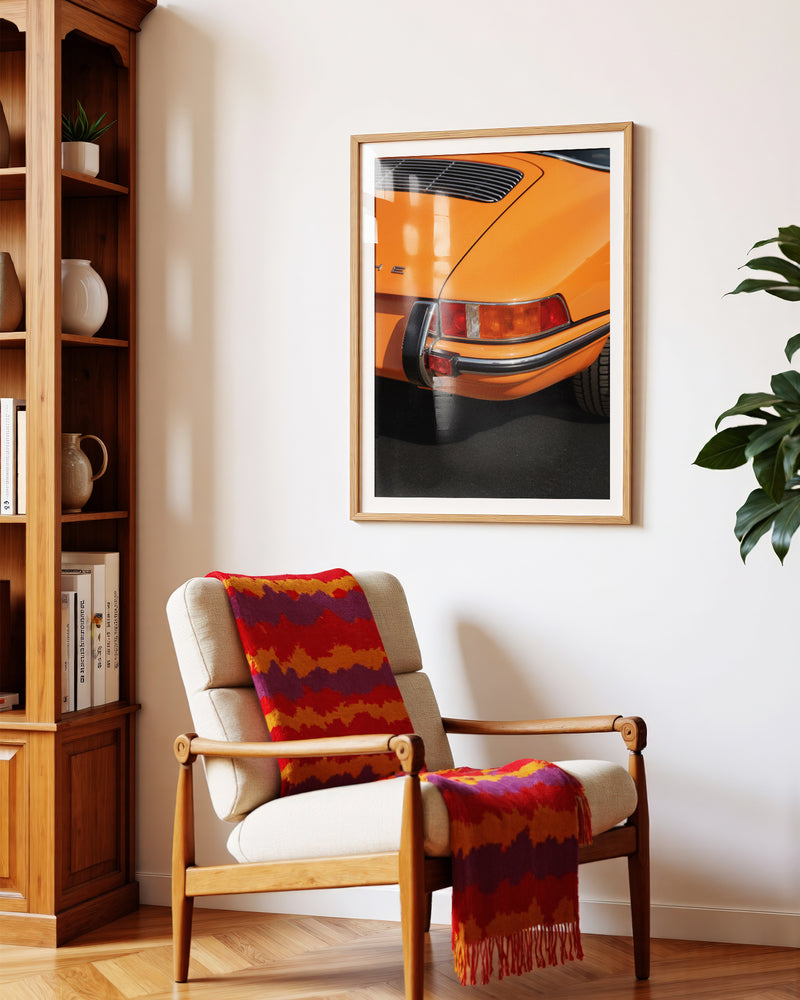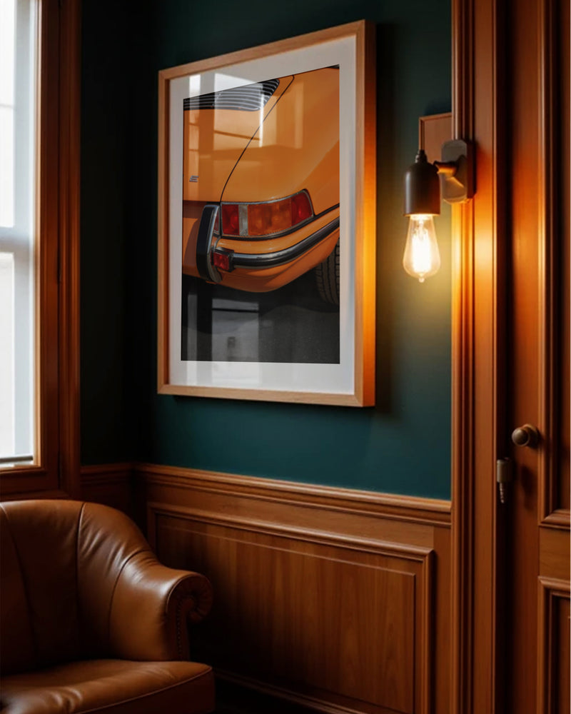A masterful celebration of the Porsche 911's iconic aesthetics, where a single detail transforms into a powerful artistic statement. The legendary Signal Yellow paint radiates against deep shadows, each curve and line telling the story of automotive perfection. This piece captures more than just a car detail – it immortalizes an era of design excellence, where form and function achieved perfect harmony.