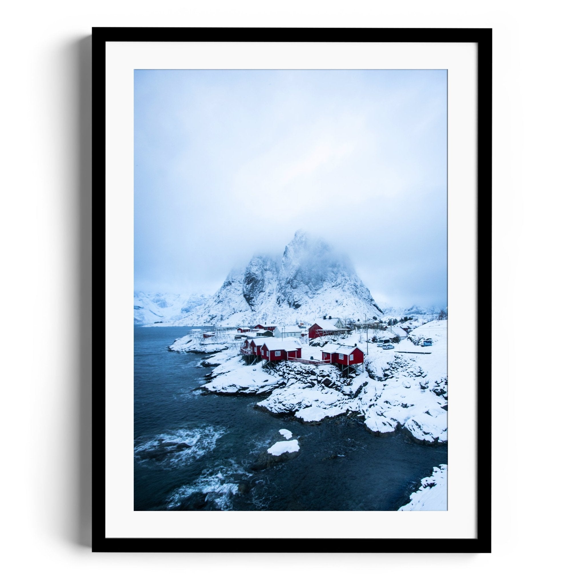 This piece captures the essence of Norway's soul, where traditional life meets majestic nature, transforming Lofoten's iconic fishing cabins into a meditation on harmony between culture and wilderness.
