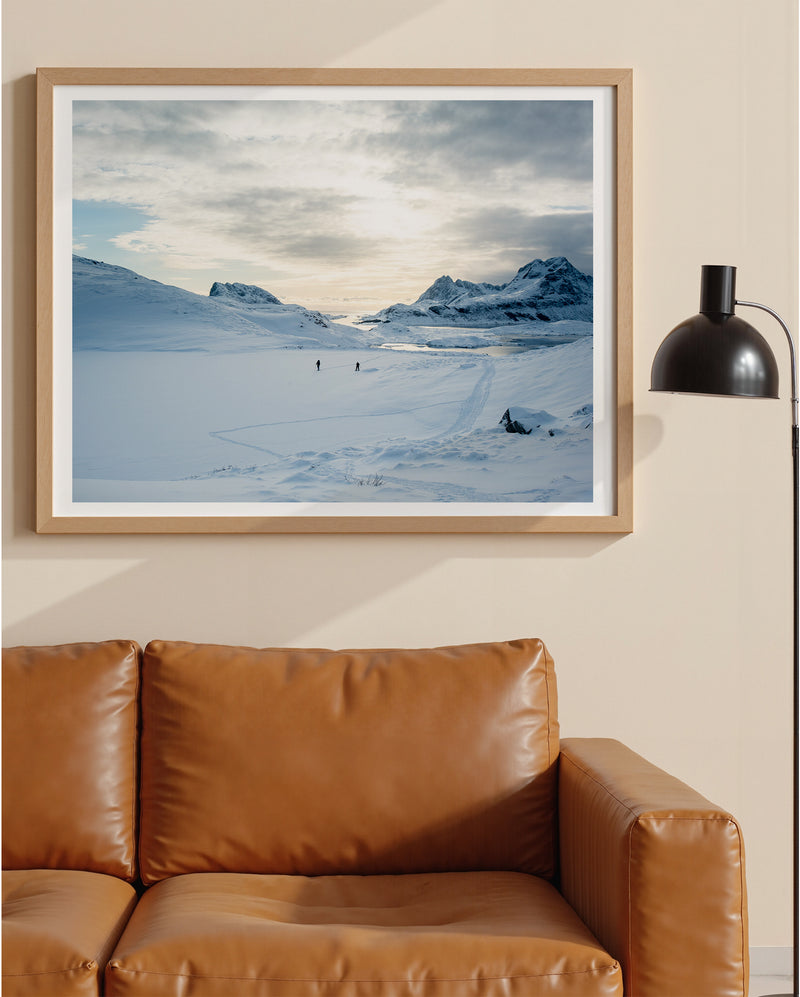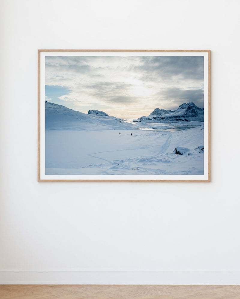 Embrace the profound serenity of Norway’s untouched wilderness with "SOLITUDE," a compelling piece from George Lozada's exclusive "Norwegian Soul" collection. This evocative photograph captures a lone figure standing amidst an expansive snowy landscape, embodying the tranquil isolation and majestic beauty of the Lofoten archipelago.
