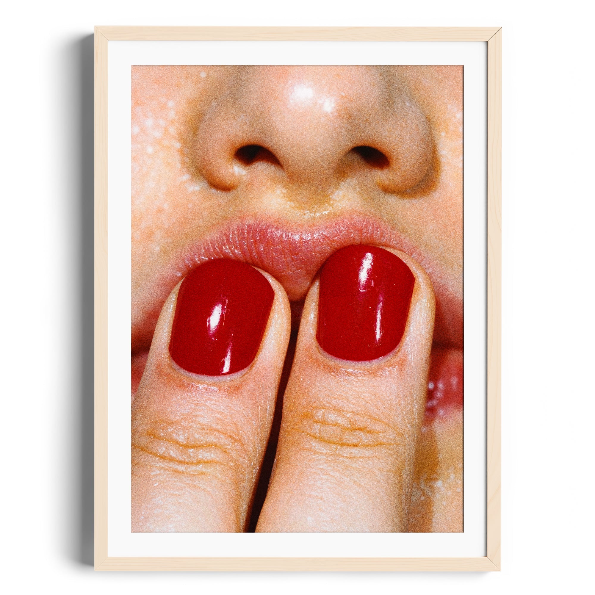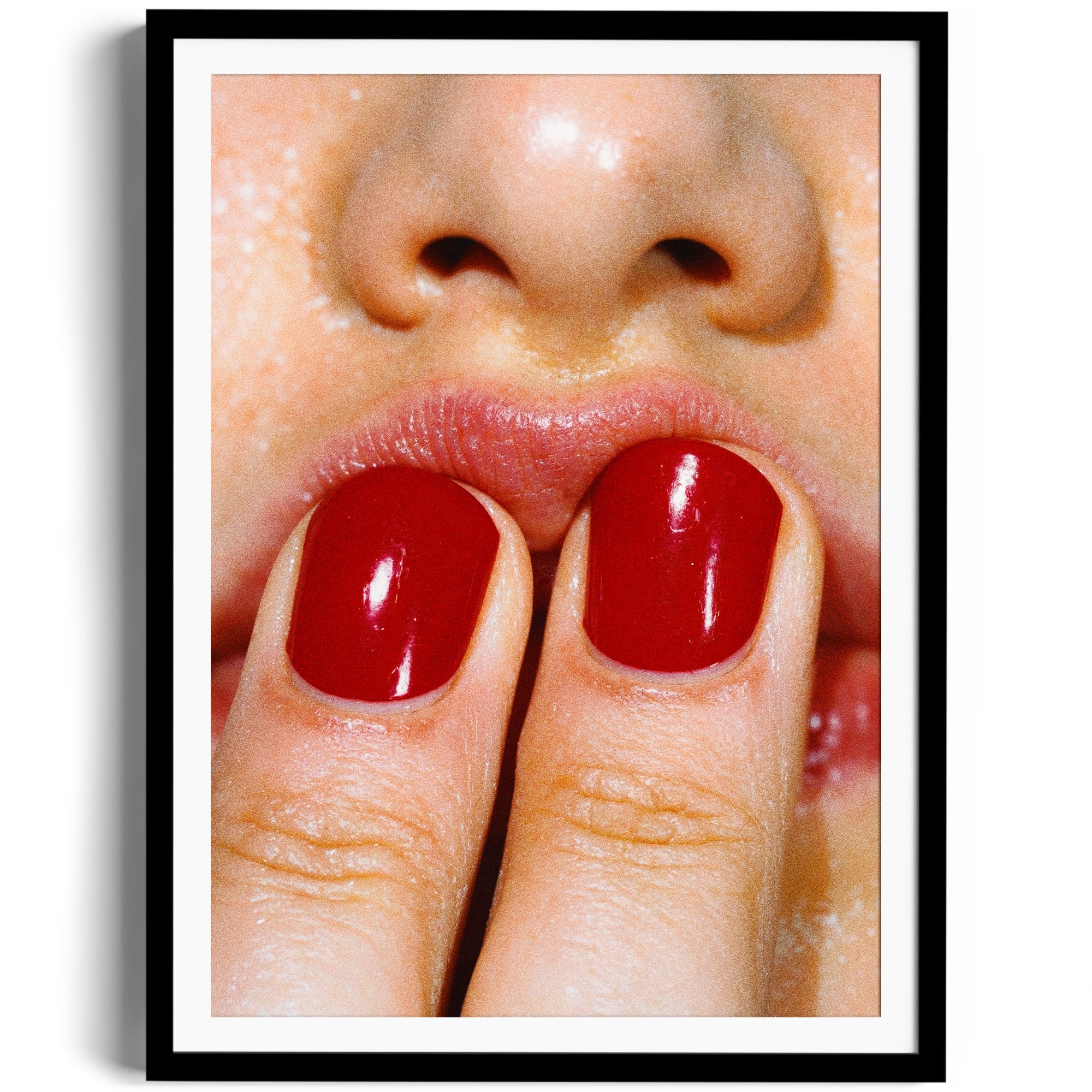 A daring exploration of desire and form, where each detail becomes a story of its own. This mesmerizing close-up transforms lips into a landscape of sensuality, creating an intimate dialogue between art and observer that commands attention at any scale.